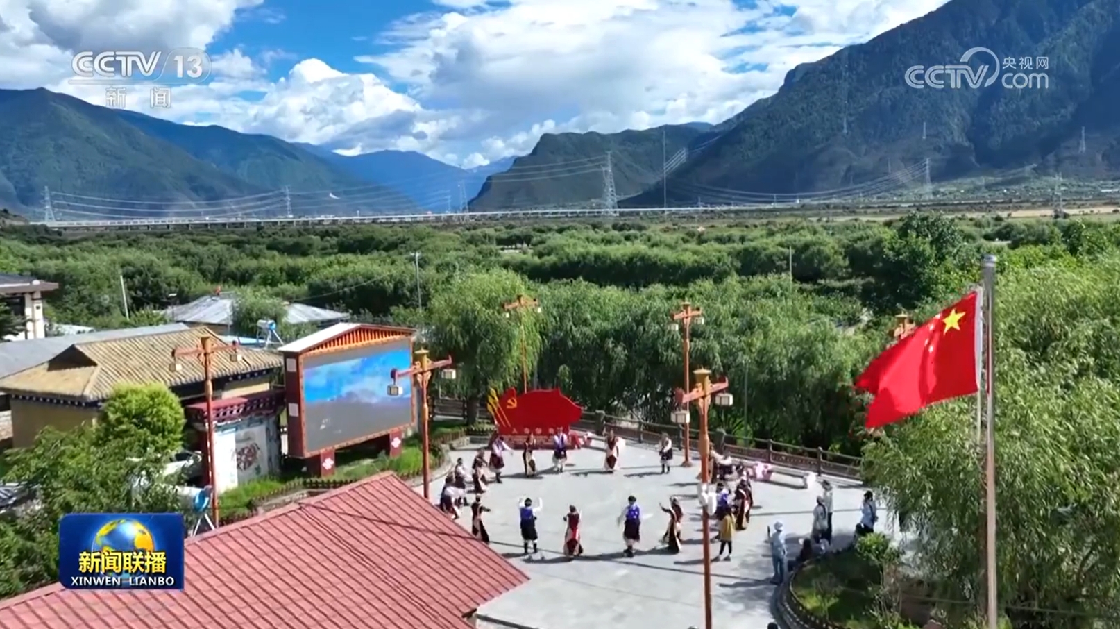 雪域高原上,迎风飘扬的国旗承载着高原儿女对幸福生活的礼赞、对党和国家的感恩、对习近平总书记的爱戴。桃花花开五瓣,瓣瓣同心,一个团结、富裕、文明、和谐、美丽的社会主义现代化新西藏正展现在世人眼前。