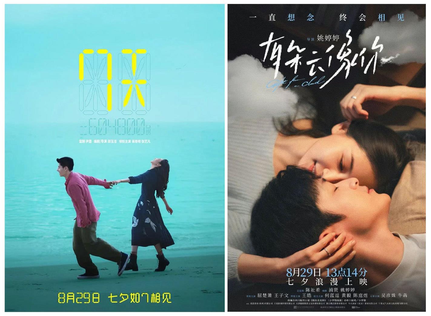 今日是七夕,爱情片《7天》《有朵云像你》也会与观众见面。