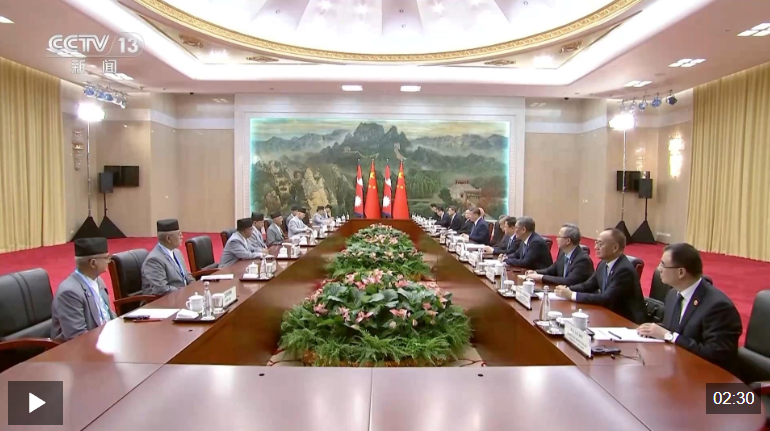 习近平指出,中国和尼泊尔是山水相连、世代友好的邻邦,也都是热爱和平、自立自强的国家。建交70年来,两国人民风雨同舟、休戚与共,共同书写了中尼睦邻友好的历史篇章。当前,中尼高质量共建“一带一路”合作稳步推进,两国人民更加相知相亲。中方愿同尼方一道努力,赓续传统友谊,推动中尼面向发展与繁荣的世代友好的战略合作伙伴关系得到新的更大发展。