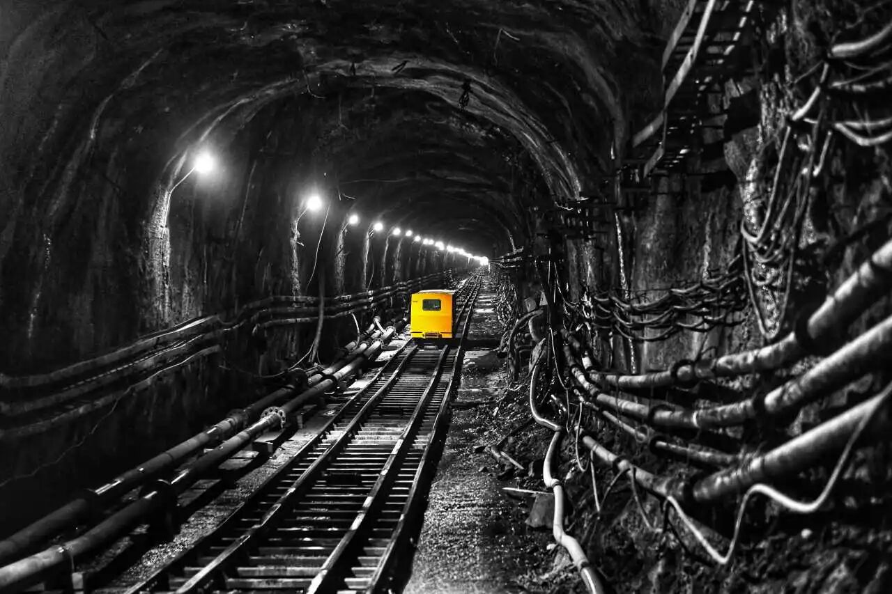 2015年的春天,江门中微子实验项目建设启动。科学家和工人们开始挖掘一条斜井(1341米)和一条竖井(616米),并向地下700米挺进。图为2022年2月,斜井人车行驶在建设中的斜井。