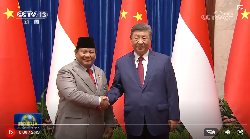 习近平指出,总统先生克服困难来华出席纪念活动,体现了对中印尼关系的重视和印尼人民对中国人民的真挚友好情谊。中方支持总统先生施政,支持印尼尽快恢复秩序和稳定,支持印尼发展壮大。今年是中印尼建交75周年,也是印尼独立80周年和万隆会议召开70周年。无论国际形势如何变化,中印尼始终传承独立自主的民族精神,坚持合作共赢的相处之道,展现和平发展的大国担当。中方愿同印尼秉持建交初心,弘扬和平共处五项原则和万隆精神,高水平推进中印尼命运共同体建设,为人类进步事业作出应有贡献。