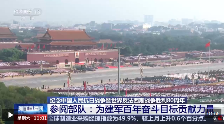 纪念中国人民抗日战争暨世界反法西斯战争胜利80周年大会9月3日隆重举行。受阅部队作为共和国武装力量的代表,光荣接受了党和人民的检阅。中央军委主席习近平签署通令,嘉奖参阅全体人员。广大参阅官兵备受鼓舞,一致表示,一定不负习主席重托,为如期实现建军一百年奋斗目标、加快把人民军队建成世界一流军队不懈奋斗。