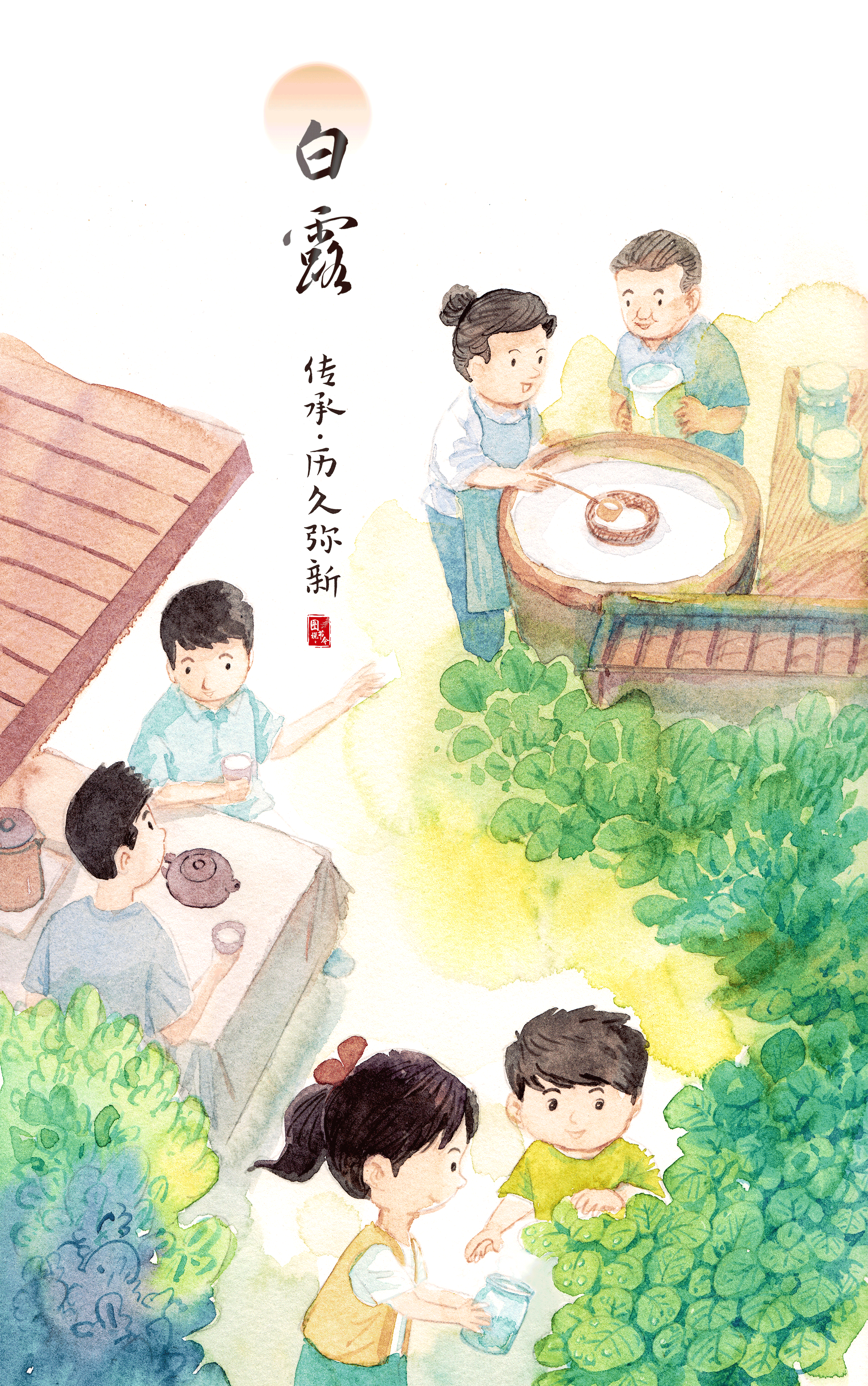 它化作一滴露水、一杯茶、一盅酒