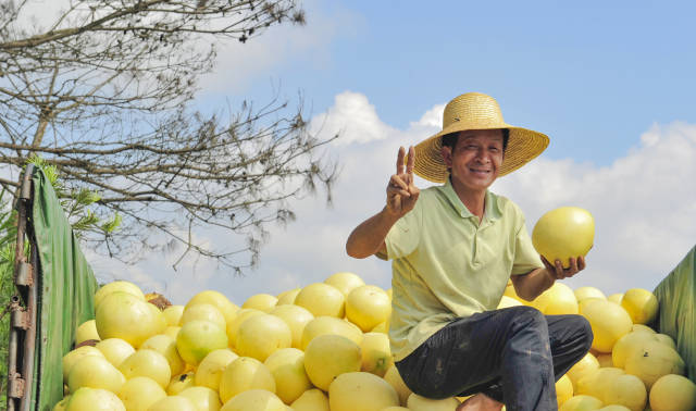 梅州蜜柚丰收,村民喜笑颜开。 南方+记者 何森垚 摄
