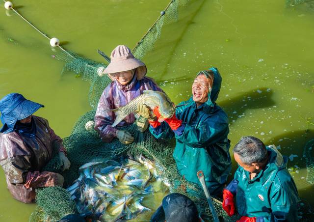 2024年12月21日冬至,广州白云区科甲水村迎来一年一度的捞鱼分鱼盛事,村民聚集在鱼塘边,观看捞鱼和分鱼,其乐融融。南方+拍客 李青松 摄