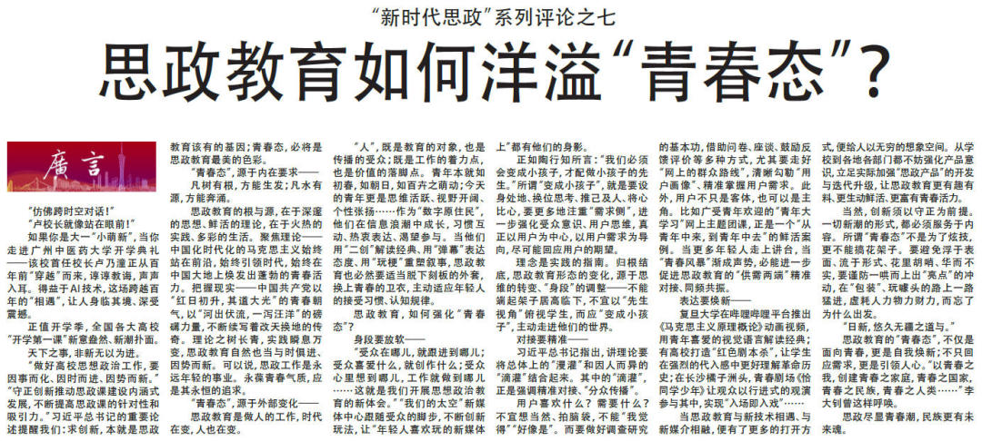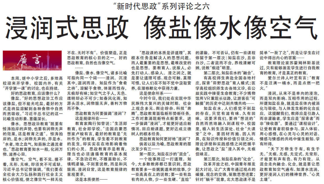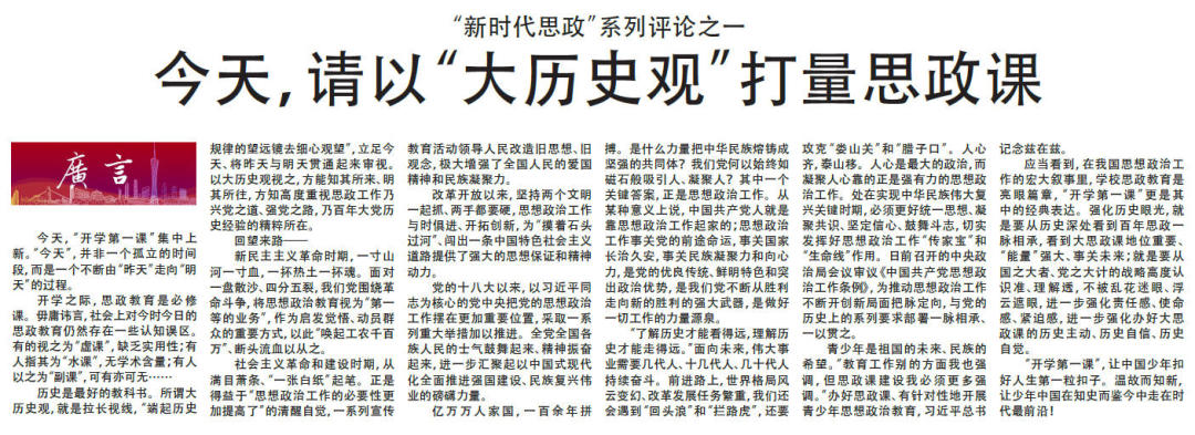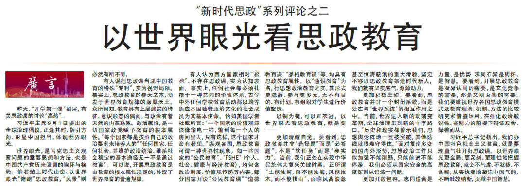 9月1日以来,本报连续推出十篇“新时代思政”系列评论。
