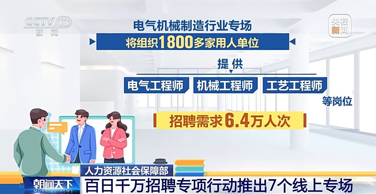 电气机械制造行业专场将组织1800多家用人单位,提供电气工程师、机械工程师、工艺工程师等岗位,招聘需求6.4万人次。