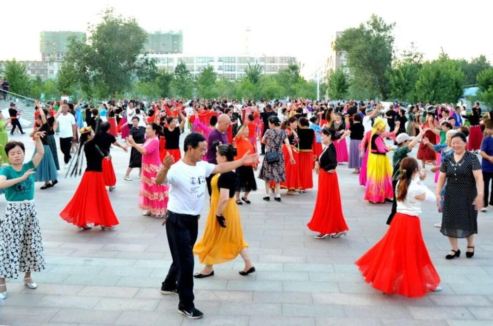 沙湾市百余名舞蹈爱好者同跳新疆舞。宋建亮 摄