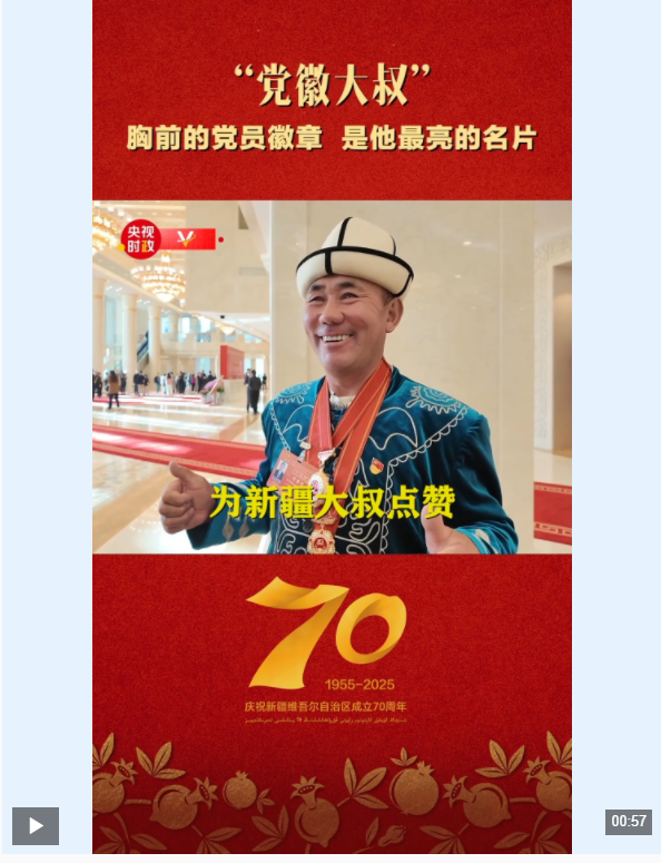 总台记者在现场见到了来参会的新疆克州阿克陶县木吉乡的先进模范阿布都加帕尔·猛德。几年前,阿布都加帕尔·猛德因一段视频而备受关注。视频中他帮助陷入泥潭的游客车辆脱困,游客提出给钱作为报酬,他谢绝了,并亮出胸前的党员徽章。他也因此被网友称为“党徽大叔”。