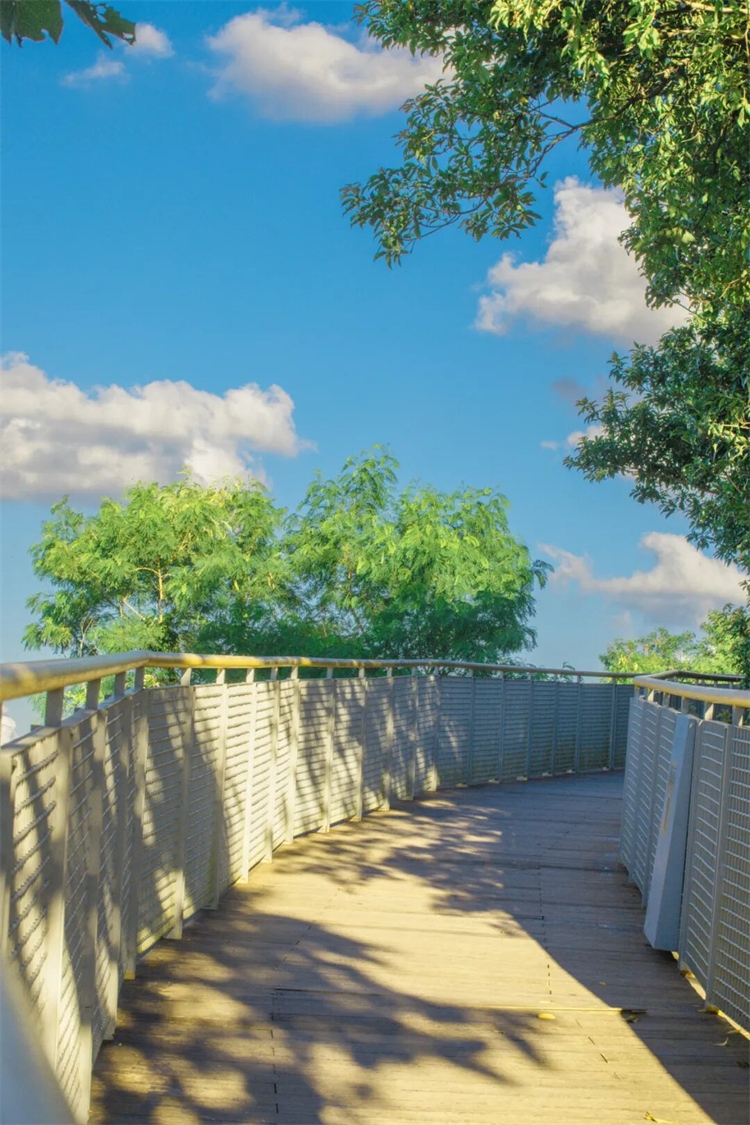 穿过树影绰约的栈道,伴着轻柔山风、耳畔虫鸣,在山与海之间眺望飞机划过云端。铁仔山公园是宝安的“网红”公园。