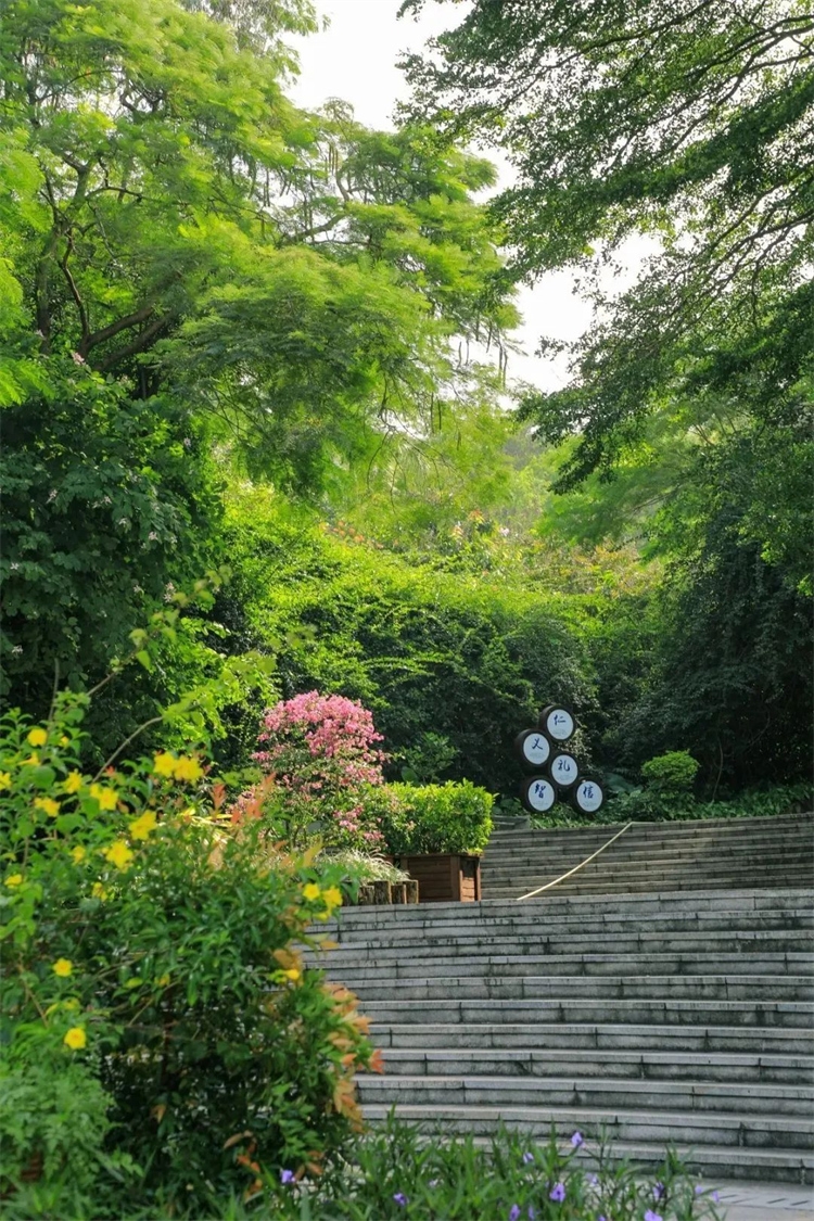 公园内种植有118个品种、约50万株簕杜鹃花,架设了多条簕杜鹃长廊,其中最长的一条188米,是全市最长的簕杜鹃主题文化长廊。