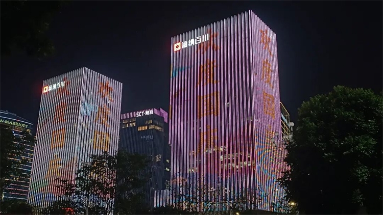 璀璨绚烂的灯光秀在海滨广场舞动变换