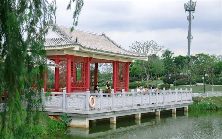 公园内还有儿童游乐区、林下健身区、清波剧场、清风艺林休闲区等,繁花绿树倒映在碧湖中,美不胜收。
