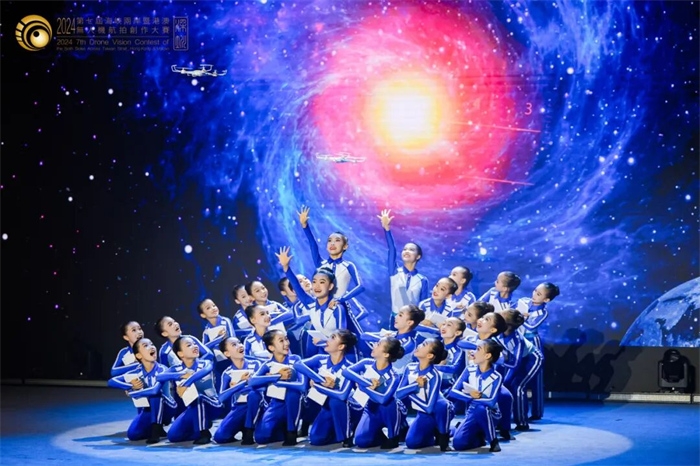 舞台上,少年们手持键盘,指尖跃动科技脉搏;无人机随乐升空,光影交织间,肢体与机械共舞,勾勒出“俯瞰世界”的壮阔画卷。从生涩排练到自信绽放,从探索“科技+舞蹈”到塑造“圳少年”形象,《升》用创新表达,让全场看见深圳学子的活力与梦想。这一刻,他们拿起的不仅是奖杯,更是热爱与勇气的火焰!