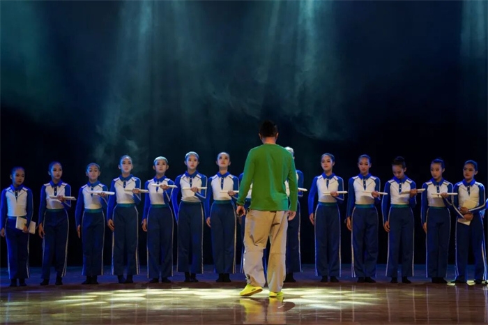 舞台上的《升》是“演”的核心呈现:从动作编排到与无人机的配合,孩子们在一次次排练中打磨肢体语言与情感表达的融合——从机械地“卡时间”到自然地“融情感”,“演”的过程成为他们感受美、传递美的实践场,让前期研究的成果通过身体语言具象化,实现从“审美理解”到“审美表达”的跨越。