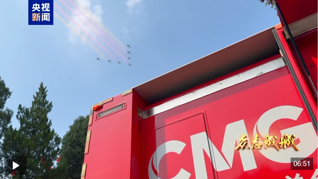 中央广播电视总台直播团队C系统导演 洪玫:今年在年号台的特殊镜头设计,我们也设计了伸缩臂制作的长镜头。它体现的是从“1945”到“2025”这样的一个历史长河当中,我们既珍爱和平,又有这种能力来捍卫和平的一种精神和力量,所以我们希望能够用我们的镜头语言,也能够诠释出这样的一种含义。