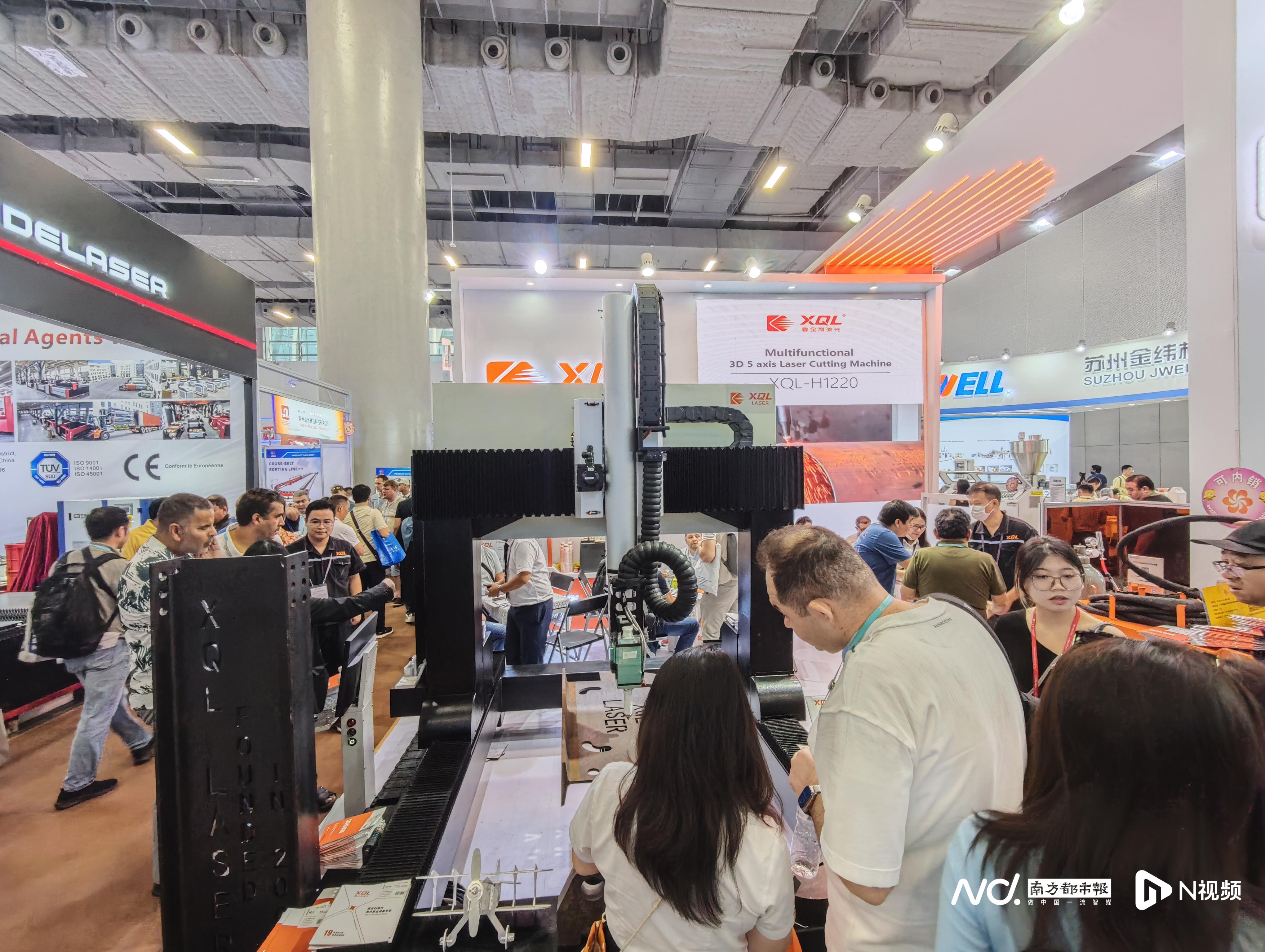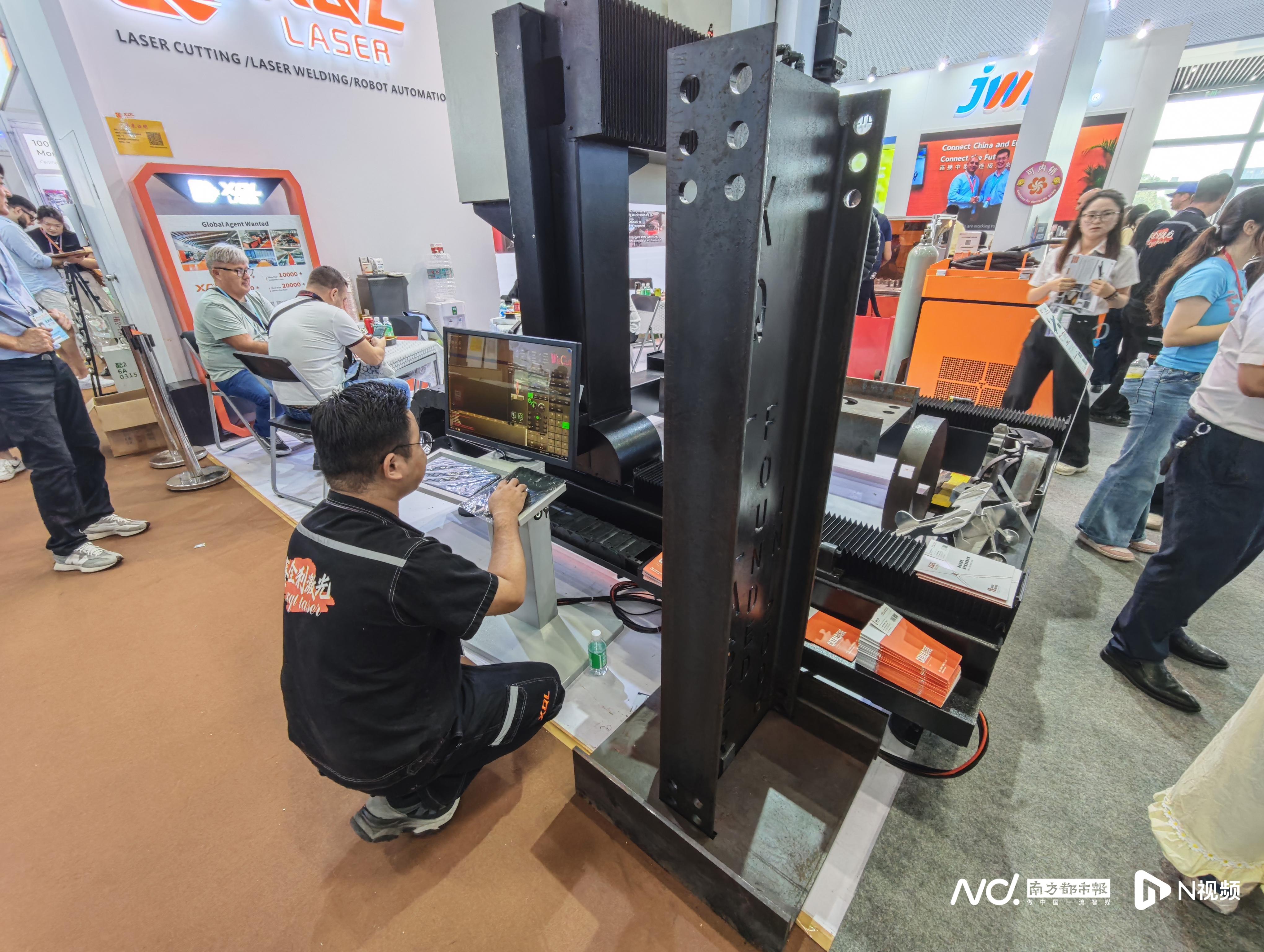 广东省鑫全利激光智能装备有限公司总经理李海波向记者介绍了公司本次参展的核心产品——最新研发的三维五轴型钢切割机,“这款激光智能装备专为桥梁钢结构等重型工业领域设计,搭载了高达3万瓦的激光功率,能够高效切割100毫米左右的厚型钢材”。李海波表示,相比较于传统钢结构的加工完全依赖手工测量、打孔和切割,存在精度误差且效率低下的问题,但数控设备通过软件控制,可以一次性精确完成这些工序,直接解决了精度和效率的双重痛点。