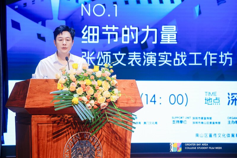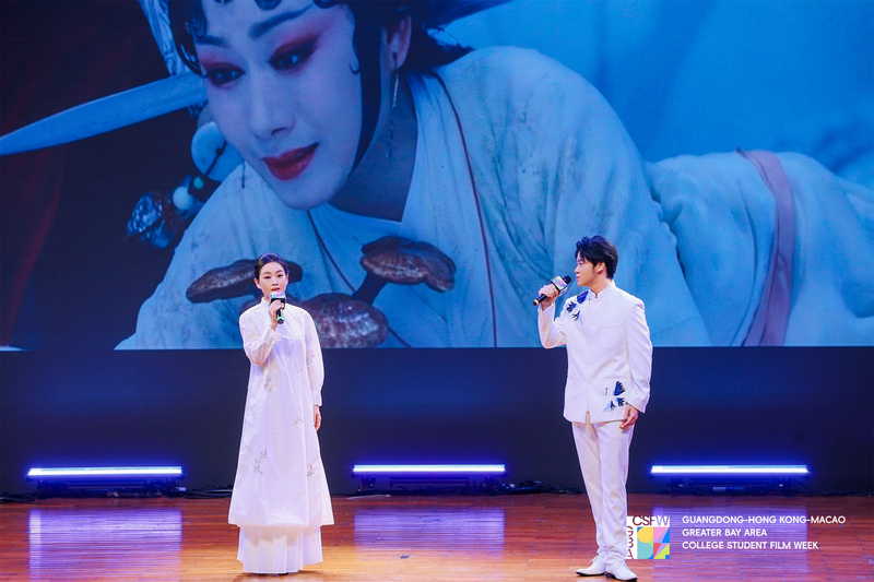 当天下午,著名演员、电影周艺术顾问张颂文为青年电影人送上真挚寄语,鼓励大家勇敢追梦,用镜头记录时代,用光影传递青春力量。著名粤剧演员曾小敏与暨南大学澳门籍学生李洋乐一同演唱粤剧电影《白蛇传·情》推广曲《待你归来》,广东粤剧院一级演员杨静、玉龙倾情伴舞。传统戏曲与现代影视跨界融合,展现“一曲千般情,万象入戏来”的艺术魅力。