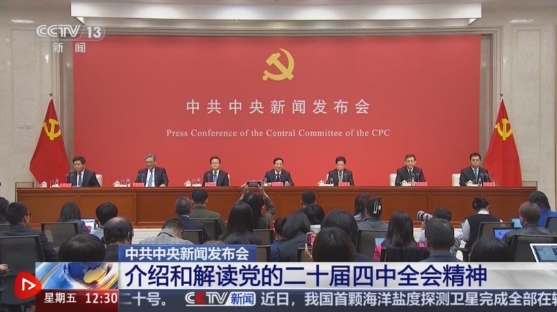 央视网消息:10月24日上午,中共中央举行新闻发布会,介绍和解读党的二十届四中全会精神。