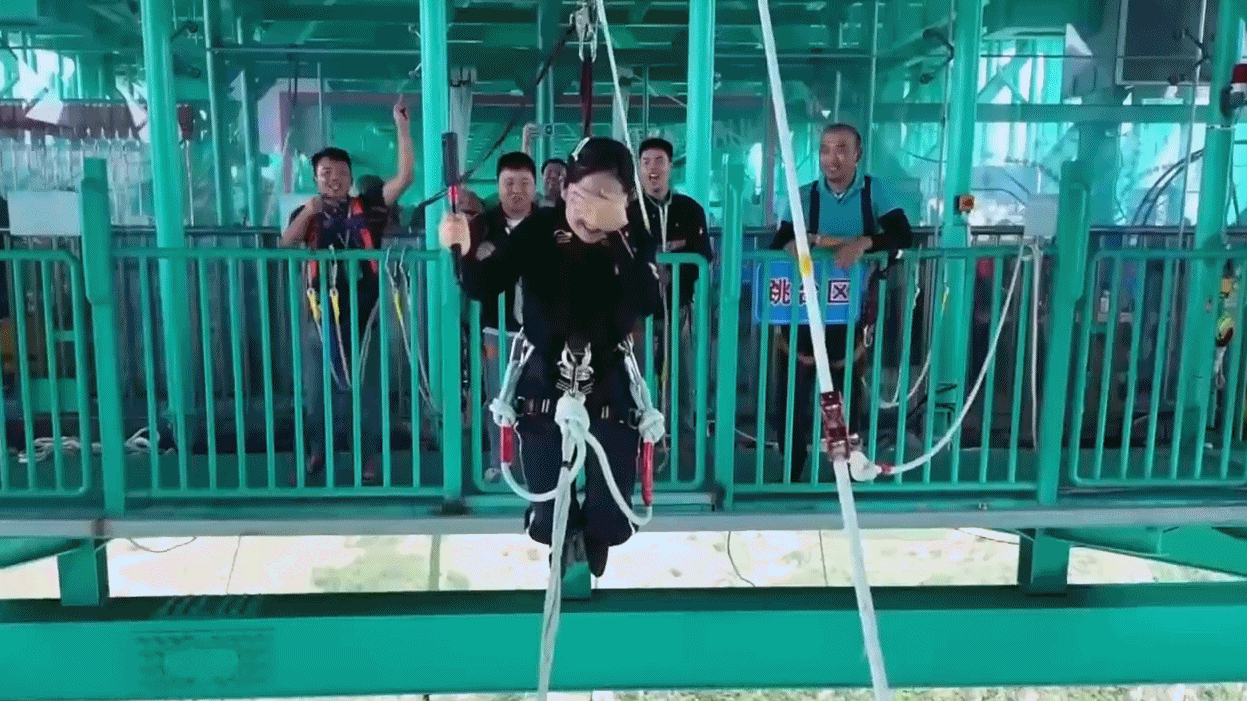 在桥体两侧,体验600多米的高空竞速跑道与蹦极。