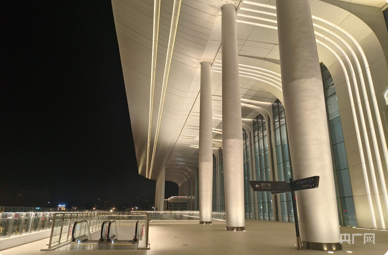 东广场上,汕头站全貌尽收眼底。“海丝腾飞、潮立汕头”的设计立意贯穿始终,22根最高约23米的“海浪柱”搭配“海浪”造型檐口吊顶,呈现“海潮奔涌”的壮阔景象;正面柱廊设计理念源自岭南骑楼,尽显传统建筑文化与开放包容的城市精神。