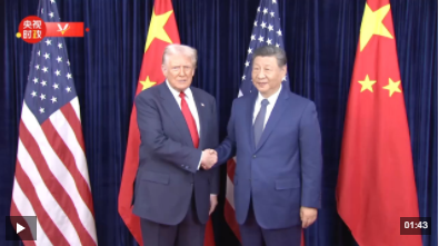 当地时间10月30日上午,国家主席习近平在釜山同美国总统特朗普举行会晤。