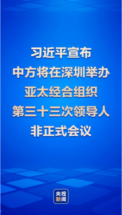 习近平宣布中方将在深圳举办亚太经合组织第三十三次领导人非正式会议