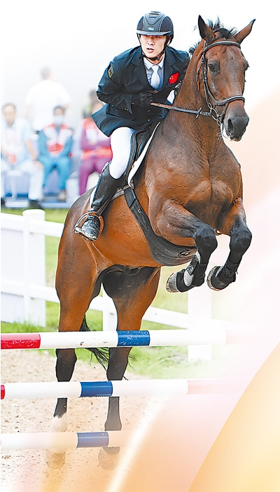 9月21日,湖北队选手陈柏良在第十五届全国运动会现代五项马术比赛中。