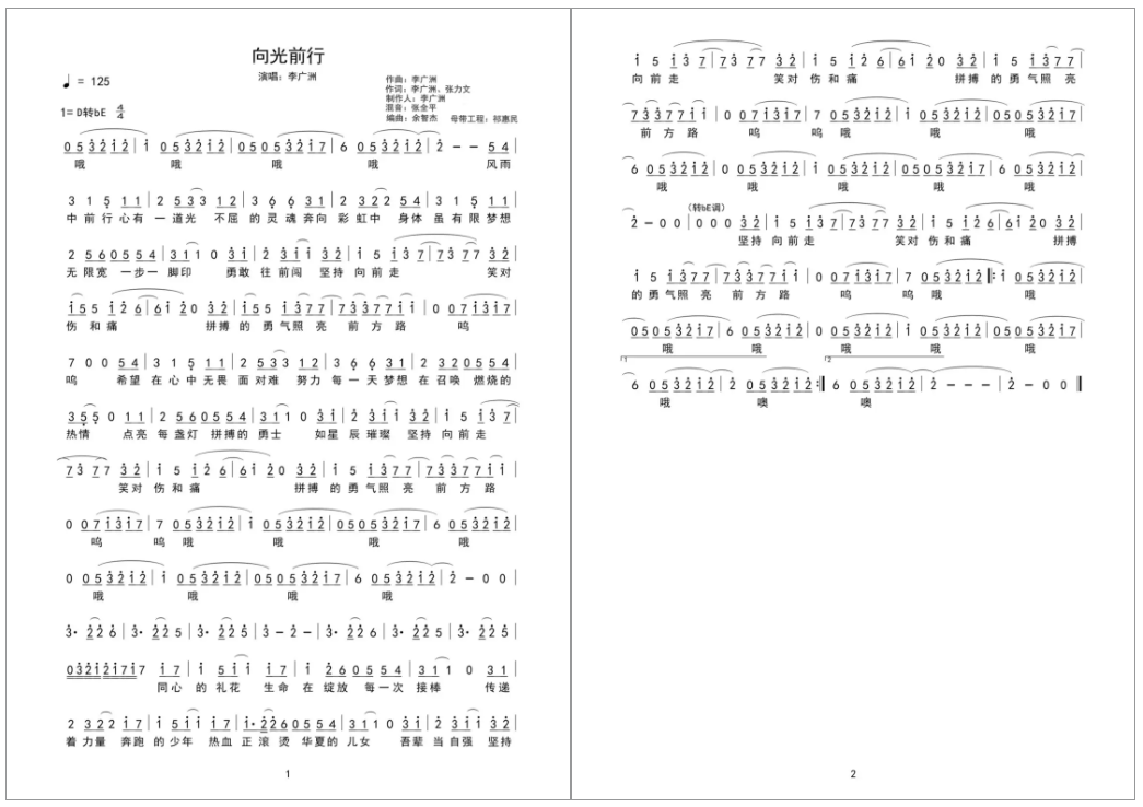 《向光前行》乐谱