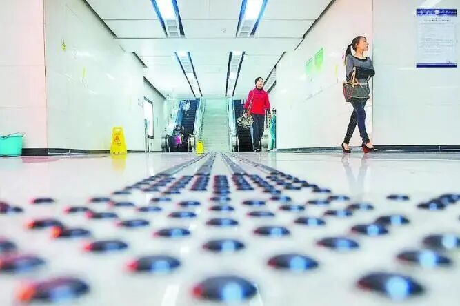 在地铁站,有盲文地图及语音播放系统,志愿者也热心帮忙;