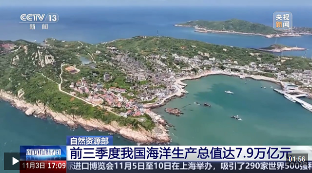 自然资源部11月3日发布,前三季度我国海洋经济呈现稳中有进良好局面。初步核算,前三季度海洋生产总值7.9万亿元,同比增长5.6%。其中: