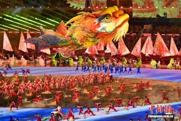 11月9日晚,第十五届全国运动会开幕式在广东奥林匹克体育中心举行。图为鳌鱼造型花灯。 中新社记者 陈骥旻 摄