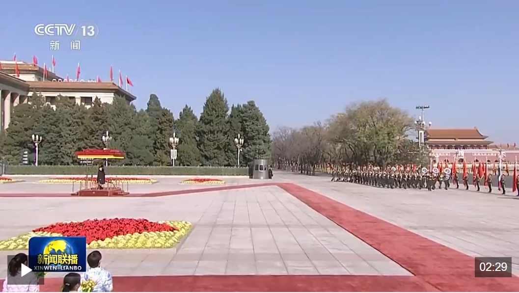 会见前,习近平和夫人彭丽媛在人民大会堂东门外广场为哇集拉隆功和王后素提达举行欢迎仪式。