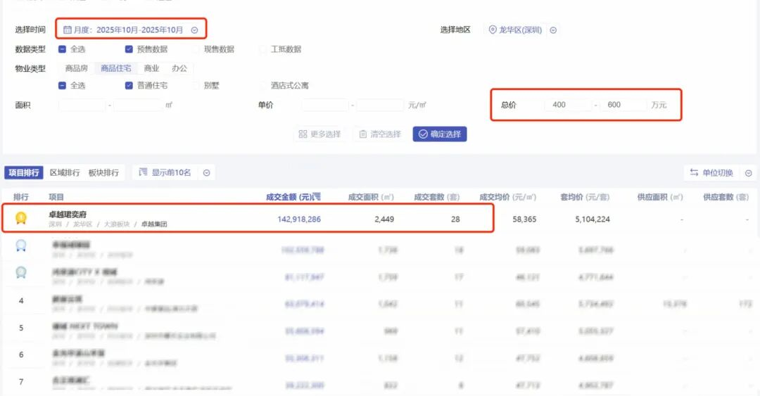 在龙华区众多新盘中,卓越珺奕府以建筑面积约83㎡稀缺两卫、建筑面积约98㎡全能四房的产品力,叠加成熟完善的生活配套,成为首置群体的优选。克尔瑞数据显示,卓越珺奕府拿下2025年10月深圳龙华区400-600万价位段商品房成交冠军。
