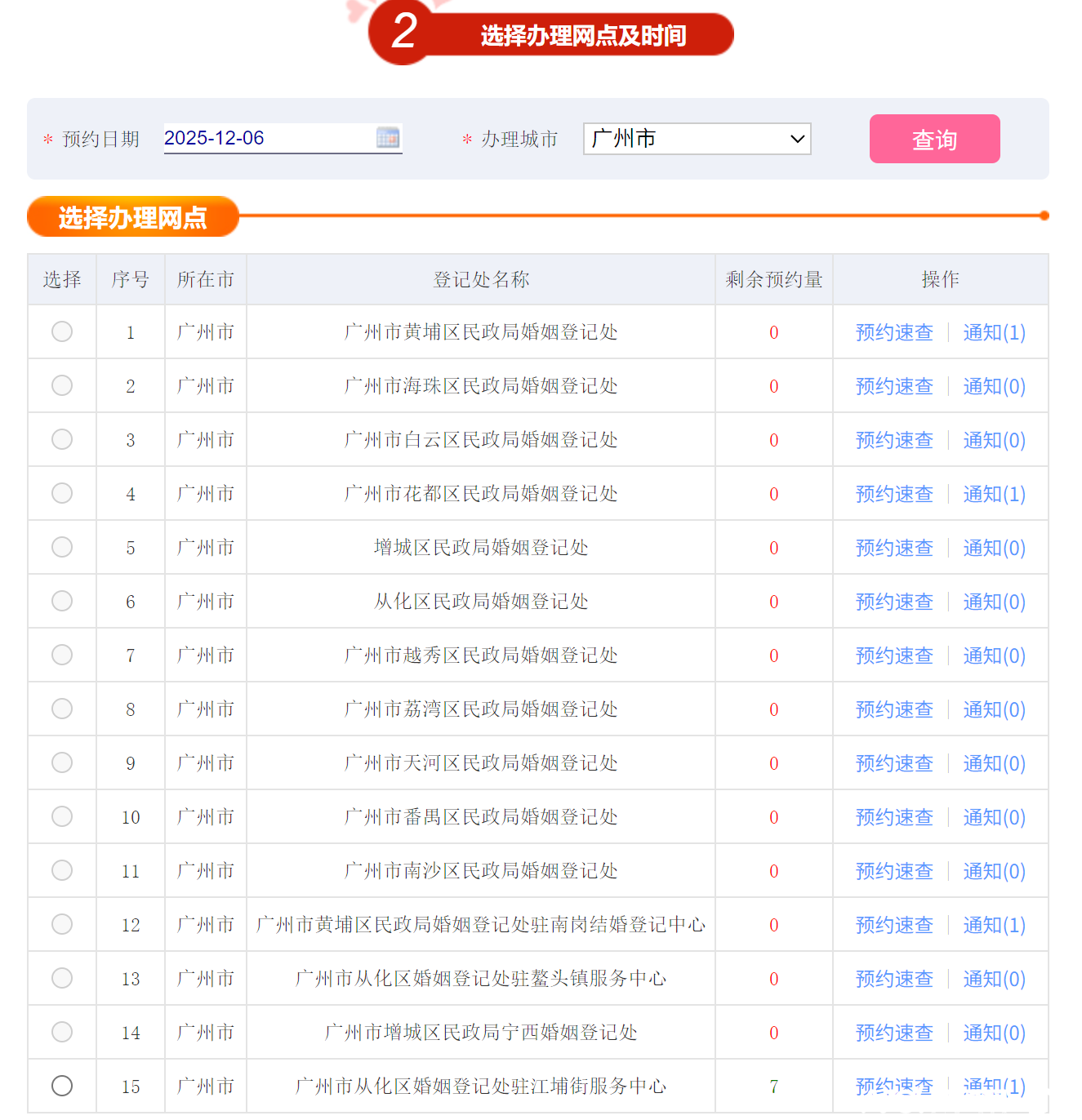 12月6日,结婚预约号则只剩下其中一个登记处有少量号源。