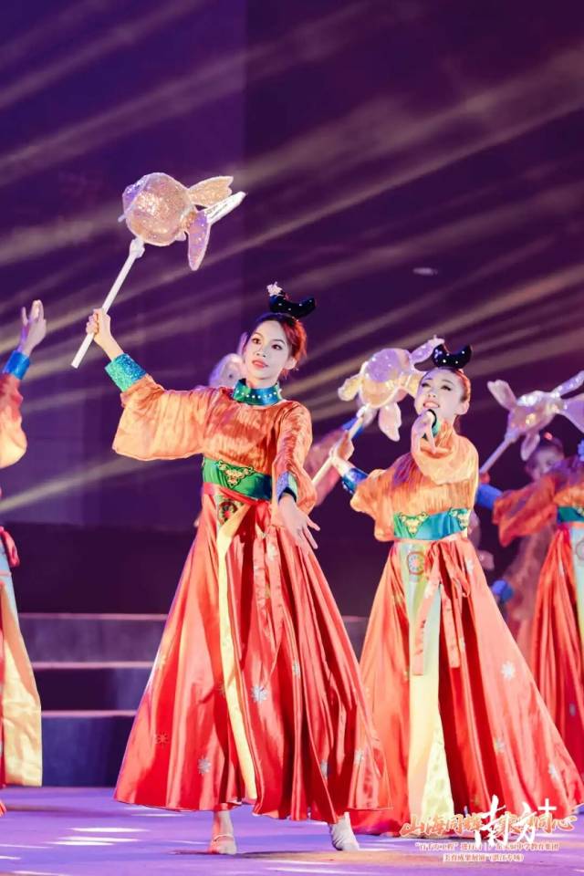 当舞台焦点转向“潮涌·碧海蓝天”篇章,则充分体现了美育在湛江本土的融合与创新。由湛江本土音乐人创作演唱的《海的声音》,与省实湛江学校舞蹈团的演绎相得益彰,散发出浓郁的海洋气息。尤为引人注目的是融合了湛江遂溪非遗“鱼灯”元素的原创舞蹈《湛鱼闹千灯》。该节目生动展示了非遗技艺通过美育课堂实现创造性转化,成为学生们审美体验与创造力的源泉,是“非遗进校园、美育活传承”的鲜活案例。