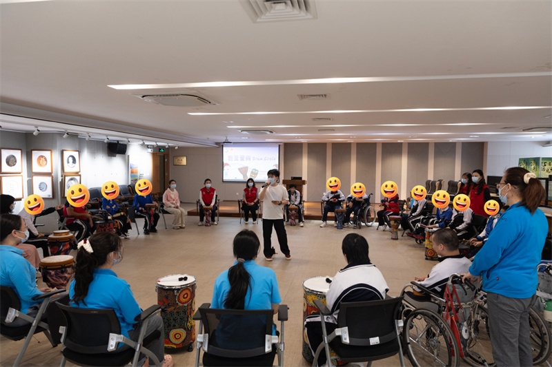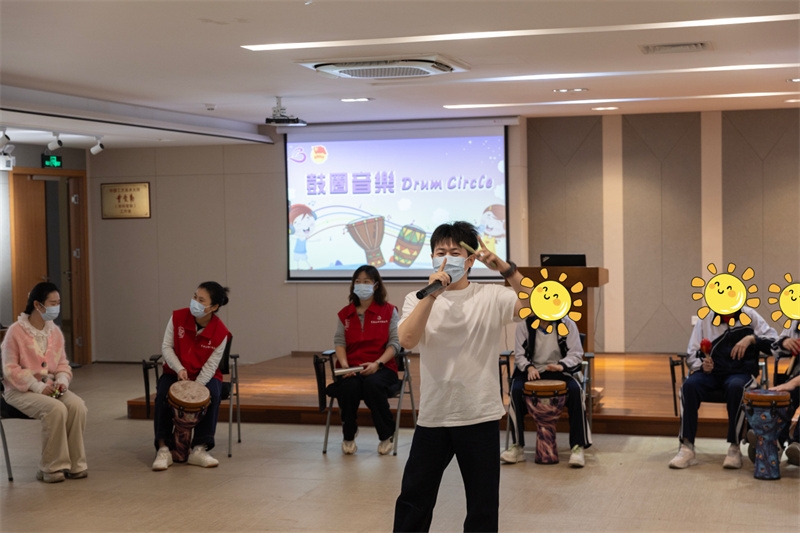 随后,鼓圈音乐疗愈活动与健康义诊同步展开。在多功能厅内,专业的音乐治疗师徐源带领孩子们开启了一场别开生面的音乐之旅。从简单的节奏练习到完整的乐曲配合,孩子们在鼓声中释放情感、提升专注,现场不时爆发出阵阵欢笑和掌声。这种集体音乐创作的形式不仅增强了孩子们的团队协作意识,更让他们在音乐中找到了表达的自信和快乐。