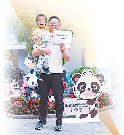 上海市民李扬帆带着孩子参加社区“宝宝屋”活动。