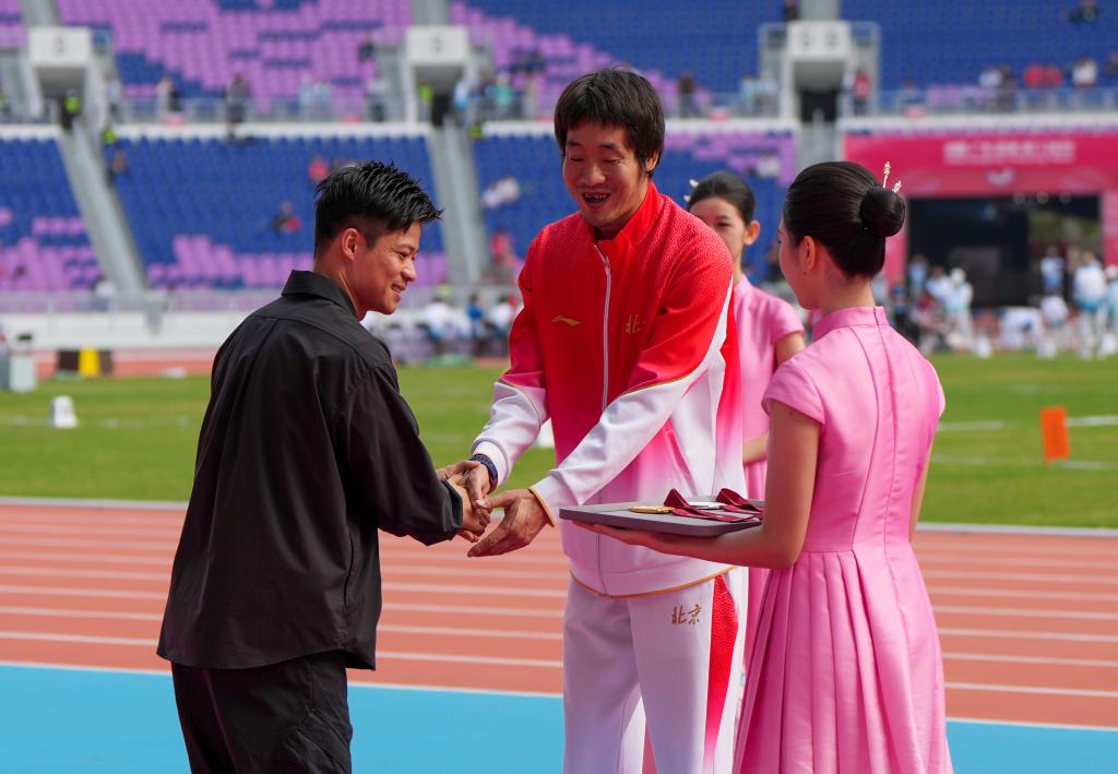 众多残疾人运动员的偶像、“百米飞人”苏炳添,12月12日为男子跳远T13级获奖选手颁奖。他说,自强不息的残疾人选手一直给他精神激励,是他心中榜样。