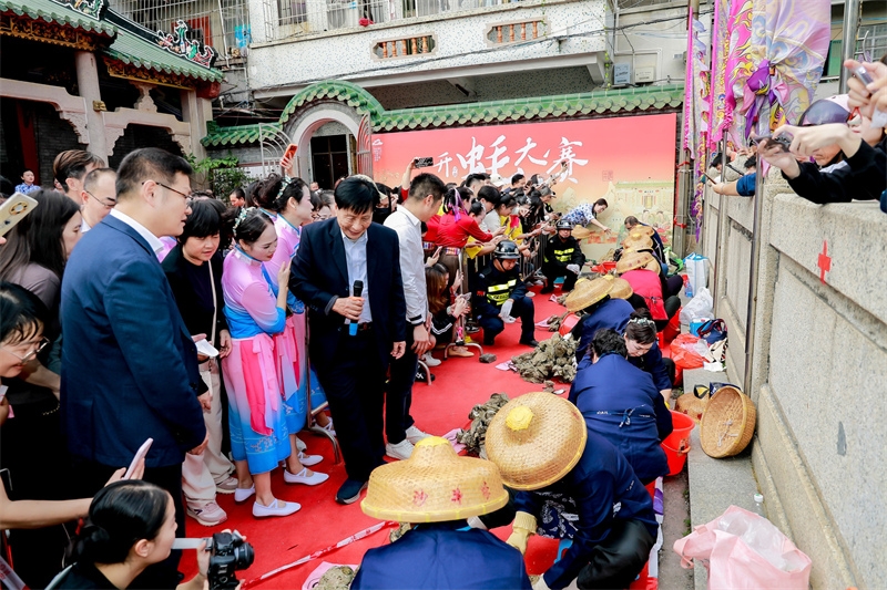 当天下午,沙井古墟义德堂分会场开幕式同样“吸睛”。蚝民开蚝大赛及蚝菜烹饪比赛同步开启,现场选手各展身手,开蚝选手手法娴熟,一敲一撬间尽显非遗技艺;烹饪选手匠心巧思,将鲜蚝化作一道道美味佳肴,引得现场观众阵阵喝彩,进一步擦亮沙井美食文化名片。