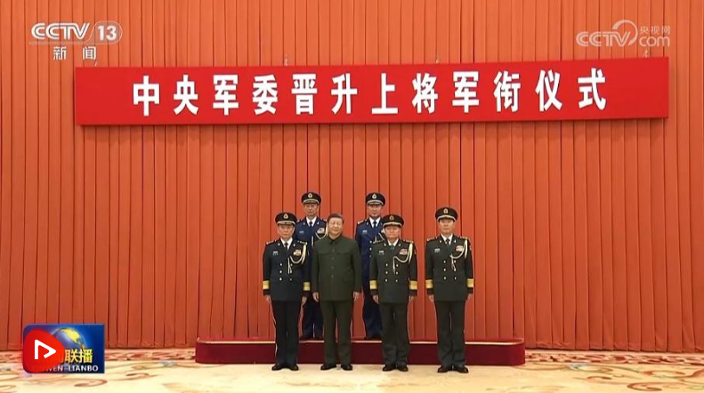 中央军委晋升上将军衔仪式22日在北京八一大楼举行。中央军委主席习近平出席晋衔仪式。
