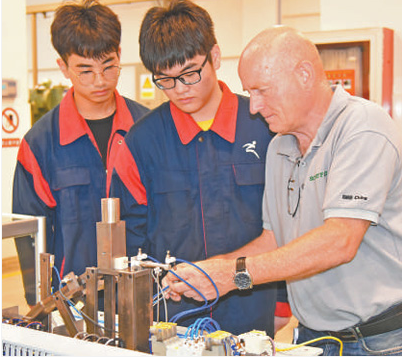 德国技术人员为苏州健雄职业技术学院学生培训操作技能。