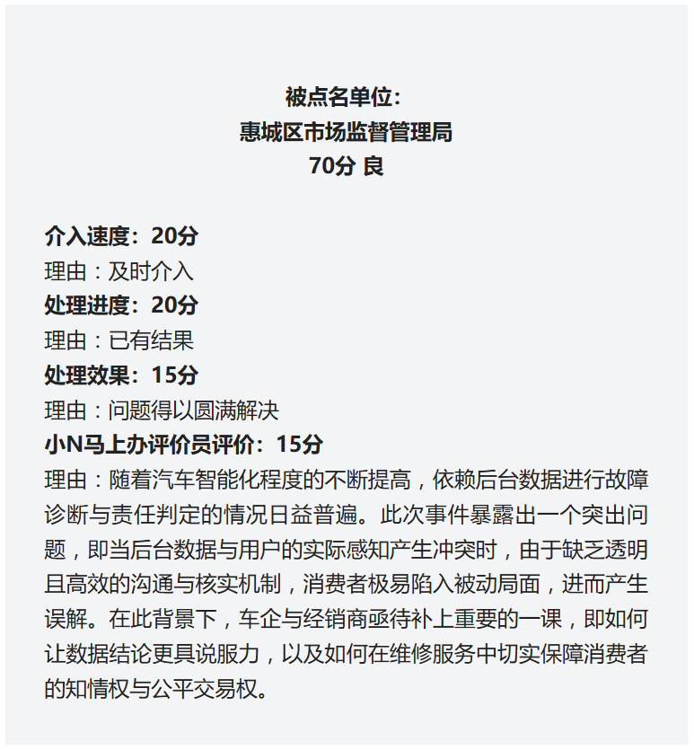 南都小N马上办记者介入采访后,惠州中升之宝汽车销售服务有限公司提出了新的解决方案,并在惠城区市场监督管理局小金口市场监督管理所的督办下,该公司免费为车主完成了质保维修。