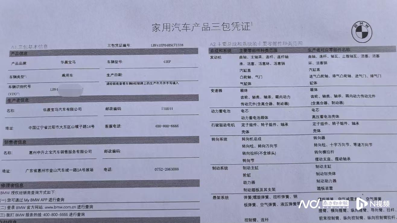 12月17日,惠州市惠城区市场监督管理局小金口市场监督管理所相关负责人在接受南都N视频记者采访时表示,今年11月21日,该局收到惠民速办平台转来的市民投诉单,投诉内容为惠州市中升宝马宝马4S店的汽车质量问题。