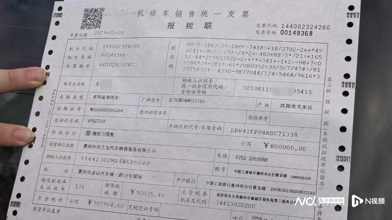 据车主王先生陈述,2023年11月28日,他在惠州金山汽车城的中升之宝宝马4S店,花费80多万元购买了一部宝马X5。