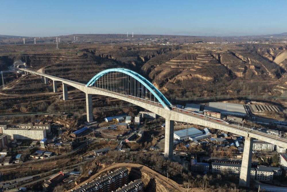 西安至延安高速铁路关键控制性工程王家河特大桥位于陕西省铜川市王益区,是西延高铁全线跨度最大、高度最高的桥梁。桥梁全长1066米,其主跨采用248米连续刚构加拱组合结构,桥面距沟底高达105米,是国内高速铁路无砟轨道桥梁中同类型结构的跨度与高度双项纪录保持者,对保障西延高铁全线贯通具有决定性意义。