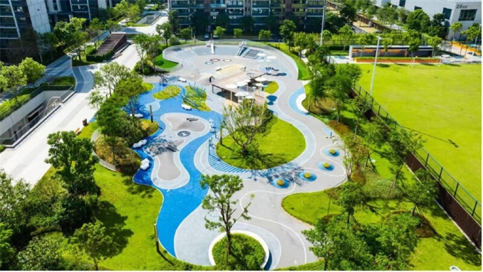 该项目以“城市融合居住+地铁+公园”为规划理念,打造约70万平方米TOD典范。紧邻城市级全龄运动公园,包含约2.4万平方米体育公园、3万平方米成长公园、4.5万平方米自然公园,形成“一轴三环”的休闲空间,实现“推窗见绿、漫步亲水”的生态体验。