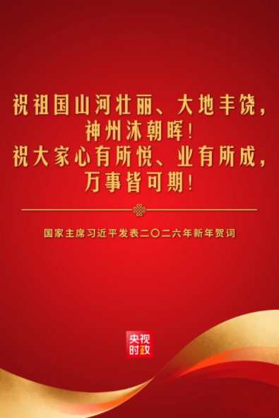 新年前夕,国家主席习近平通过中央广播电视总台和互联网,发表了二〇二六年新年贺词。