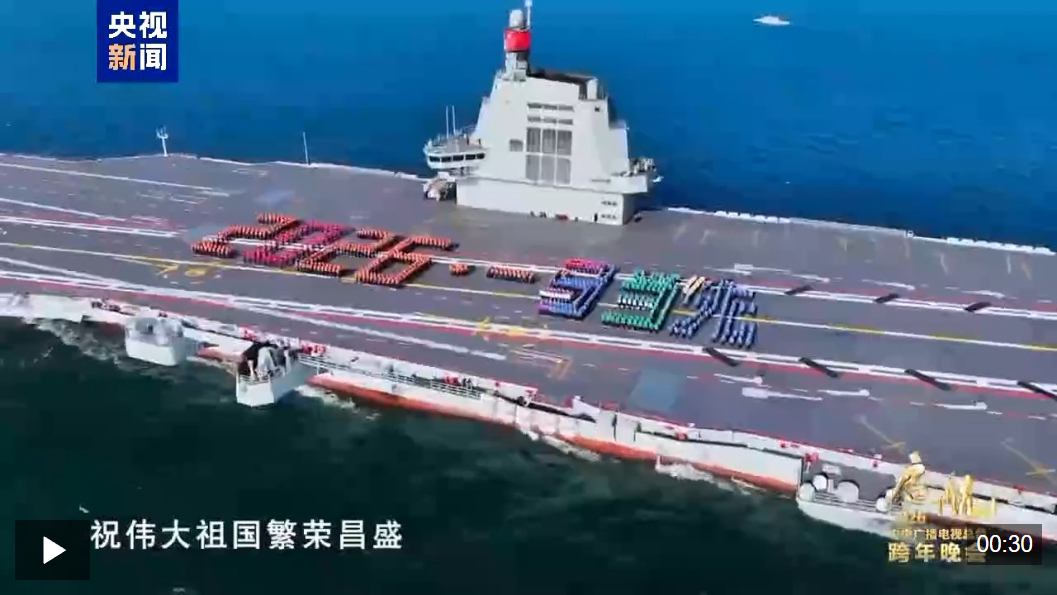 脚踏深蓝,心系山河。中国人民解放军海军福建舰全体官兵列阵,向祖国与人民致以真挚的新年祝福!