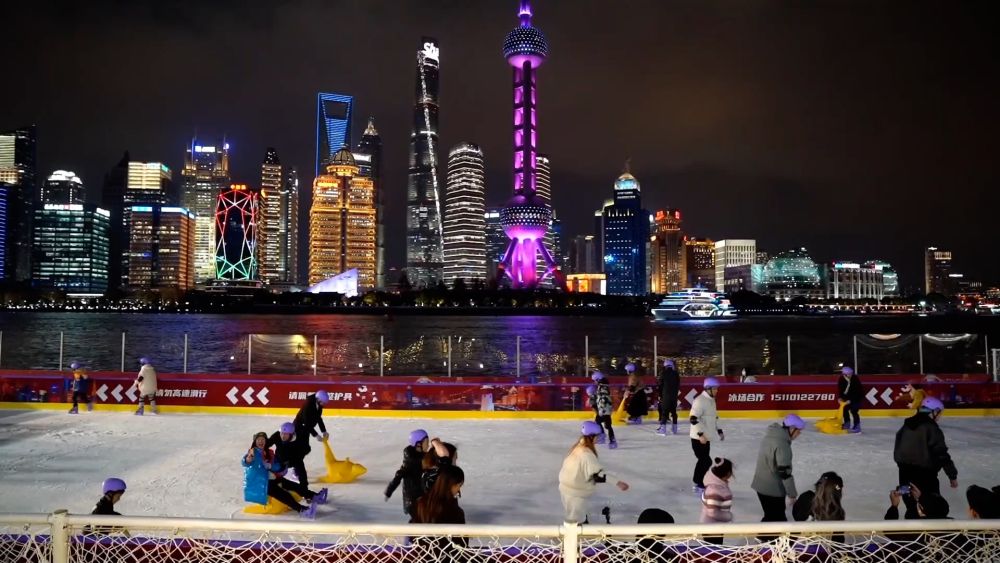 冰雪经济在上海持续升温,眼前是陆家嘴与外滩的浦江两岸风光,脚下是上海首个建在江面上的冰场。随着近日“北外滩江畔冰雪季”启动,上海首个江上冰场对外营业,冰雪运动再度点燃了这里的冬日激情。